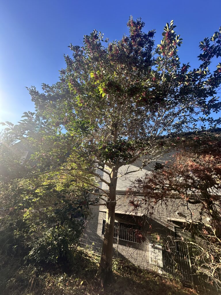 もちのきは成長が早く、気づいた時には手が届かない高さになってしまうことが多い樹種です。