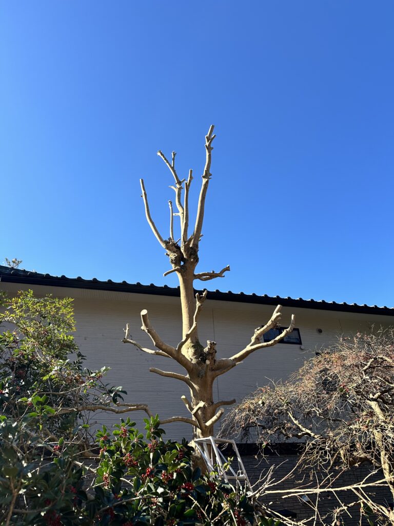 【多治見市|もちのき伐採】6mクラスの高木を安全に伐採しました|庭木のお困りごとは松本造園へ