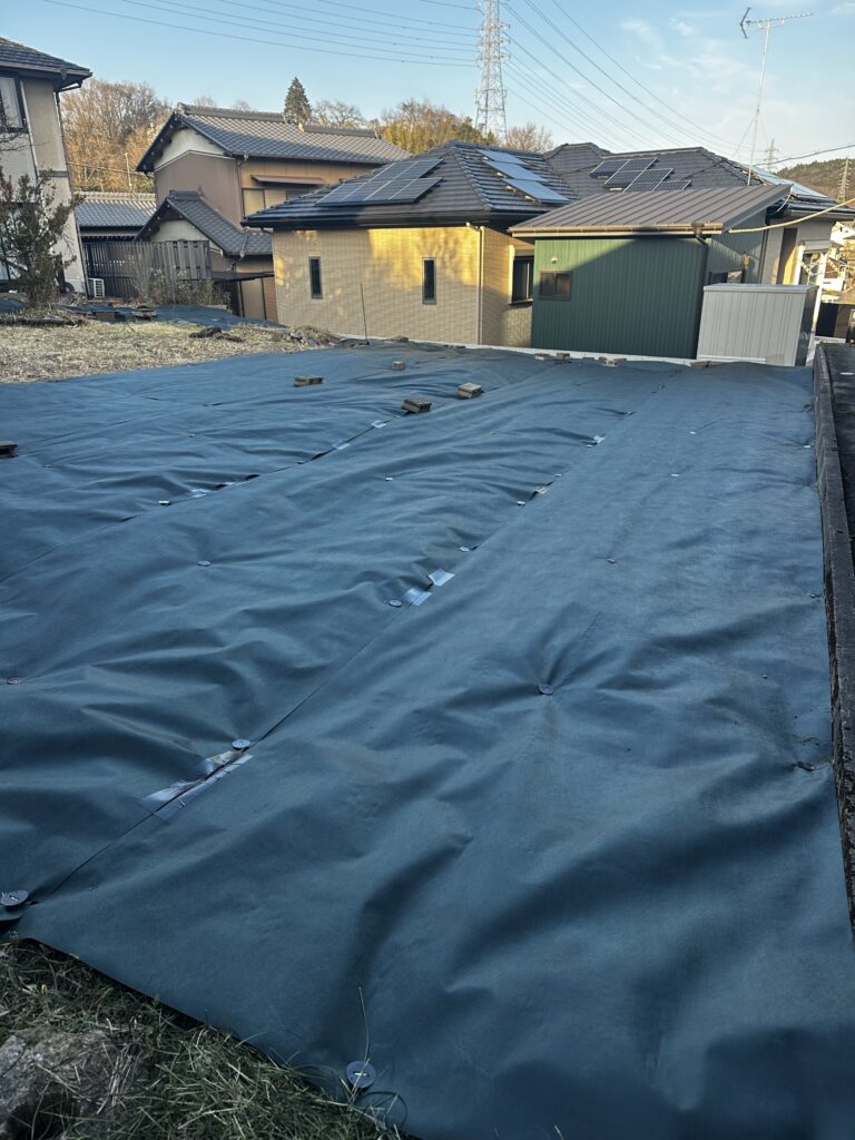 • 徹底的な除草と整地:石を取り除き、地面を平らに踏み固めることで、シートが浮いたり破れたりするのを防ぎます。